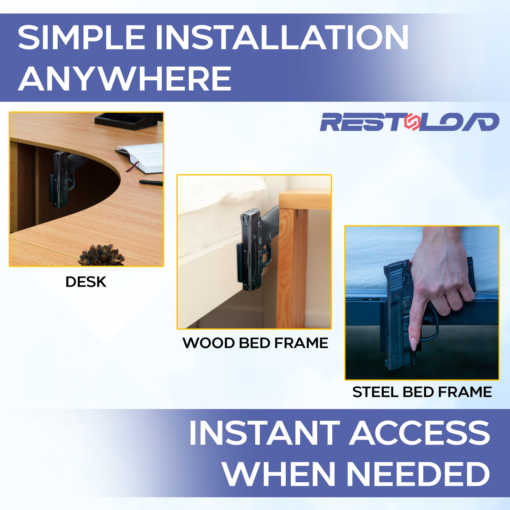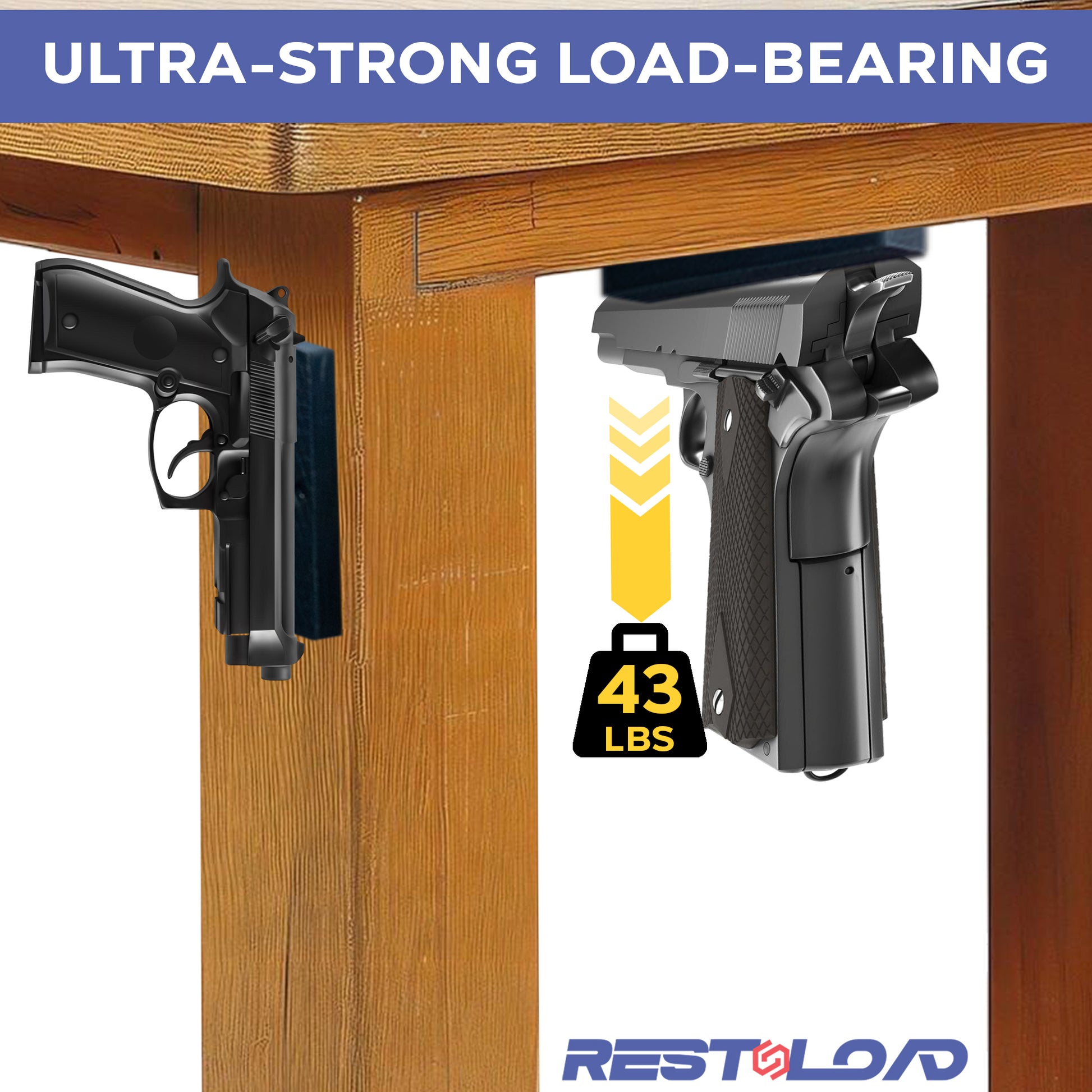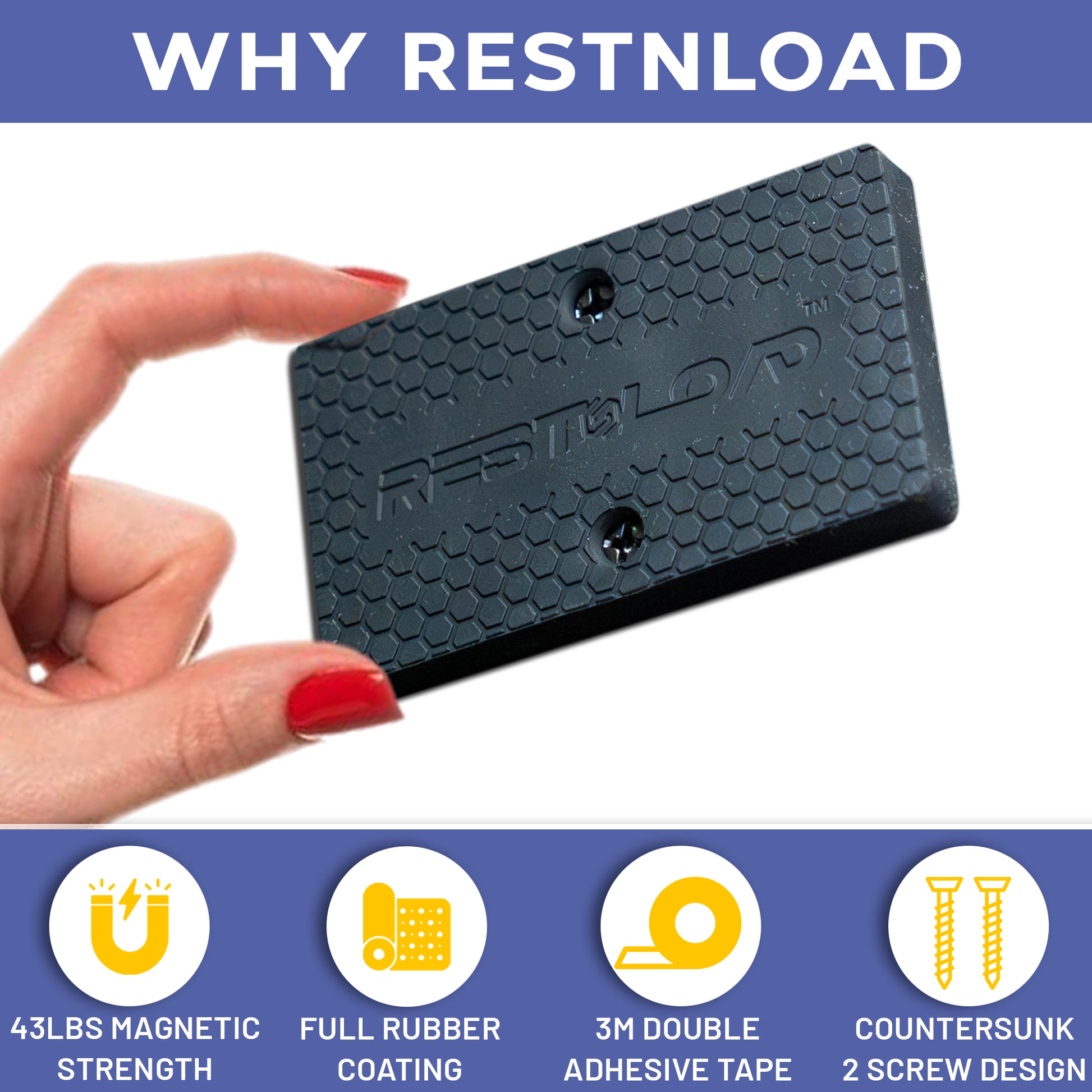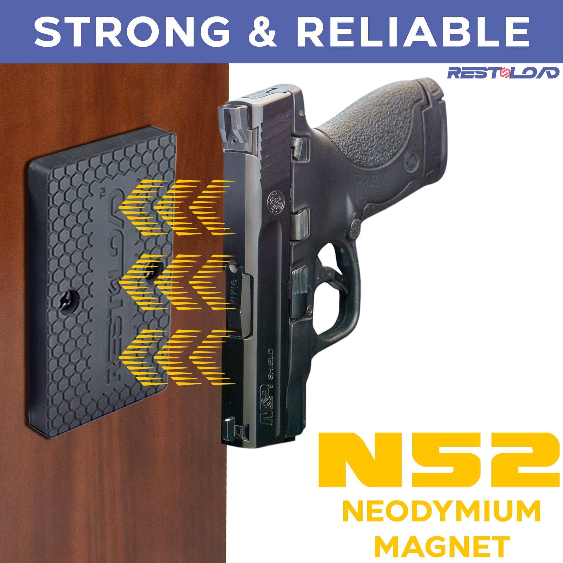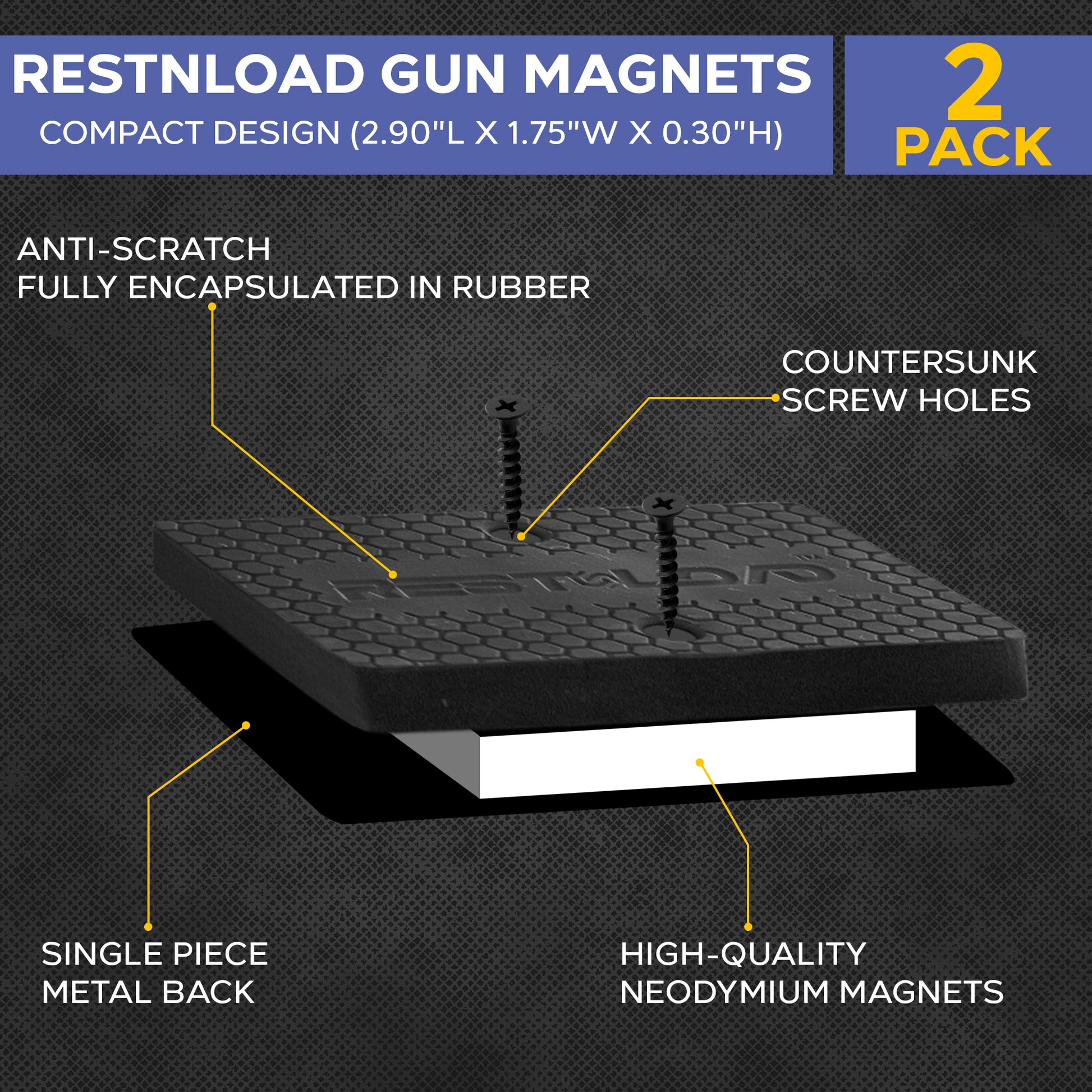 RESTNLOAD Universal Bedside Magnetic Gun Mount, Gun Magnet 43lbs. Rating, (2-Pack) Gun Holder Magnetic Holster for Cars, Trucks, Walls, Desks, Fully Rubber Encapsulated Design